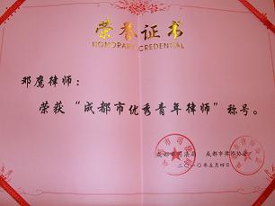 我所邓鹰律师荣获成都首届优秀青年律师的殊荣