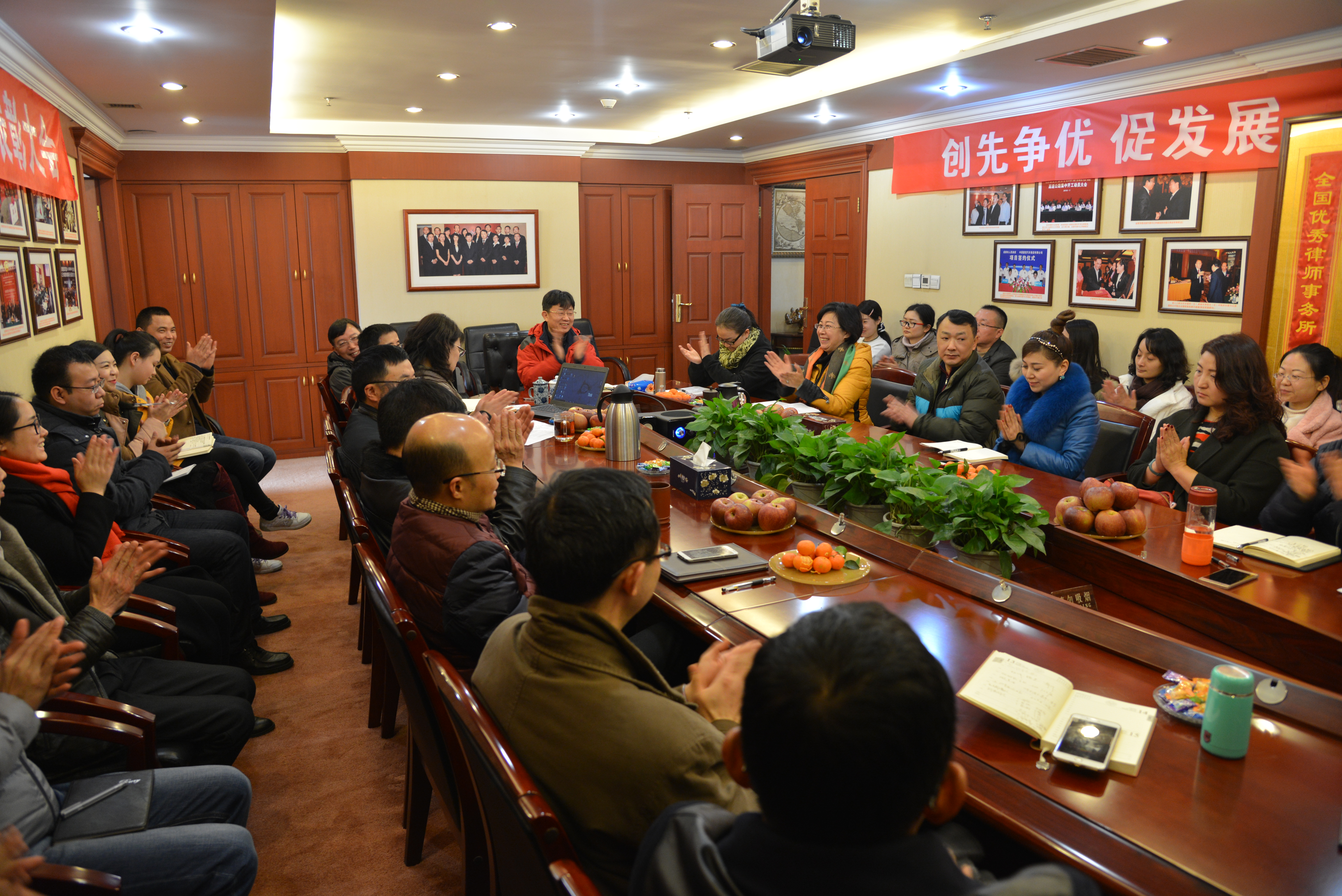 总结会上,李启军主任对2016年度事务所工作进行了全面总结。首先,表扬了事务所全体人员在市律协武侯区分会年会上的优秀表现,高度肯定了在合唱活动中大家展现出的精诚团结、严守纪律等优秀品质,希望大家继续保持这样的优良作风,在将来的活动中再创佳绩。