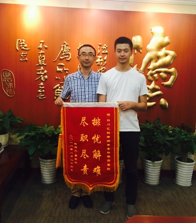 受援人特地送来锦旗,赞扬姜彤律师“排忧解难,尽职尽责”。