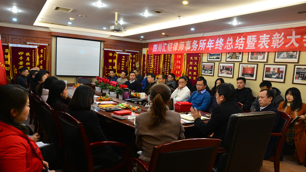 四川汇韬律师事务所2019年的年终工作总结暨表彰大会,在欢乐祥和的《迎宾曲》声中,迎来了全所律师同仁齐聚一堂,总结一年来的满满收获。