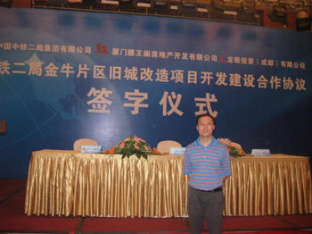 2011年6月,中铁二局集团有限公司与厦门滕王阁、香港龙骏正式签署合作协议,中铁二局引进外资进行所属金牛区旧城改造取得阶段性成果。我所李启军、徐涛律师参与了三方合作谈判的全过程。