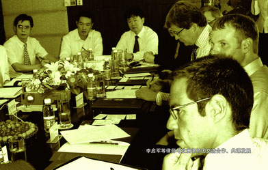 Attorneys Li Qijun(left 3), Liang Guangshu(left 2) etc. have a deep exchange with European craft brother on the development of attorney industry and international cooperation in the future.